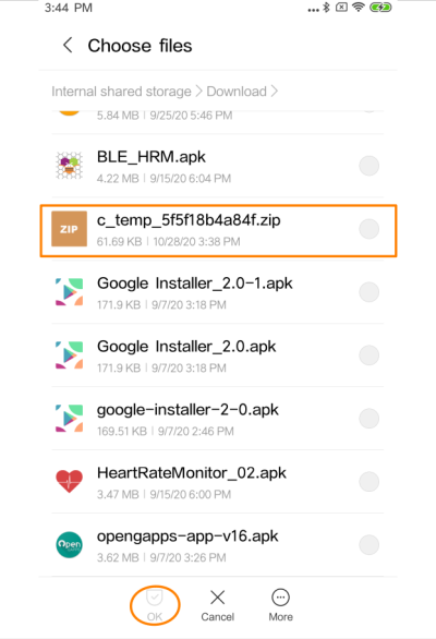 Choose the file manager and navigate to the firmware ZIP file and confirm. In case you are asked to unzip the file, then choose to not unzip it.