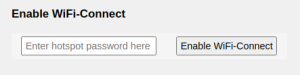 - Schroll down until you find a field to enter a password to protect this access point (at least 8 characters) and then press “Enable WiFi-Connect”. In this example we will use “12345678”.