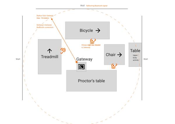 Please note: The right ear of the subject where the sensor is located should always point towards the LabGateway.