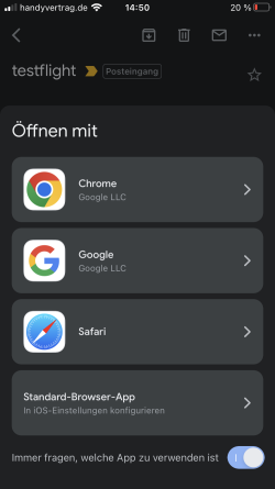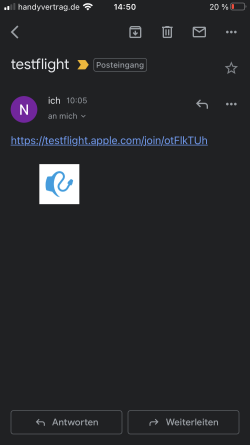 Hierdurch öffnet sich die TestFlight App mit der Einladung zum Betatest.