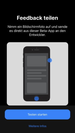 Dieses Schritt-für-Schritt-Anleitung zeigt die Installation der App-Testversion über den zur Verfügung gestellten Link. Hierfür muss, wie unten gezeigt, Apples “TestFlight” App installiert werden.