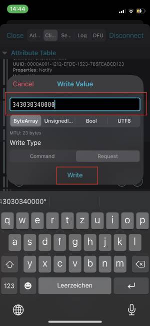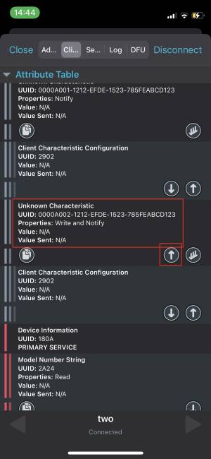 Then tap on the upward facing arrow of the unknown characteristic (the other unknown characteristic has no upward facing arrow).
